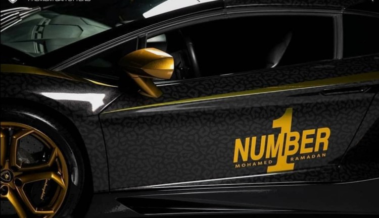 محمد ررمضان يستعرض سياراته الجديدة بالون الذهبي مكتوب عليا اسمه بجانب كلمه نمبر ون